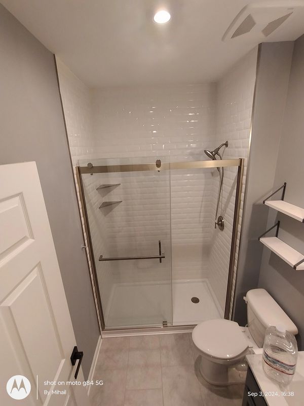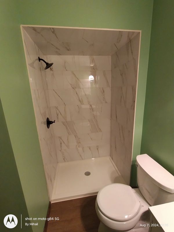 Bath tub to shower conversion. All tile walls removed and rebuilt properly.